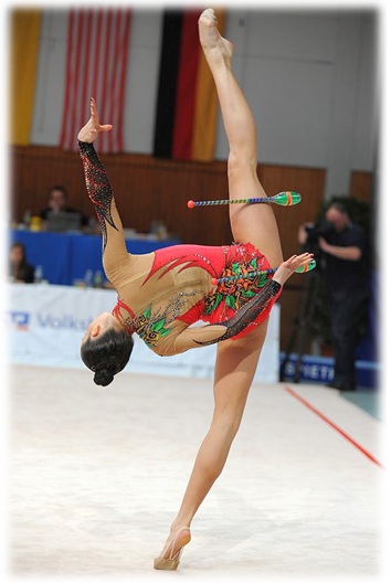 Although she ranked 2nd and 3rd in ball and clubs exercise, Anastasiya Mulmina (from Ukraine), took 4th place in all-around competition. This is her first year as senior gymnast.