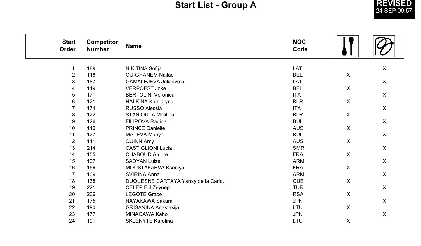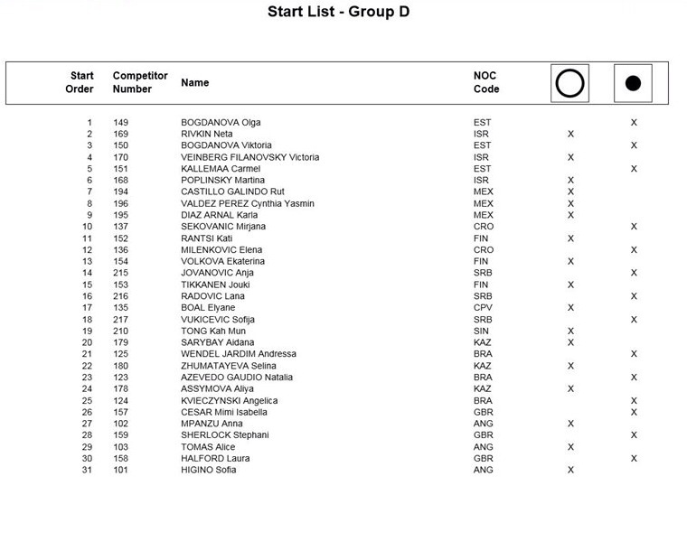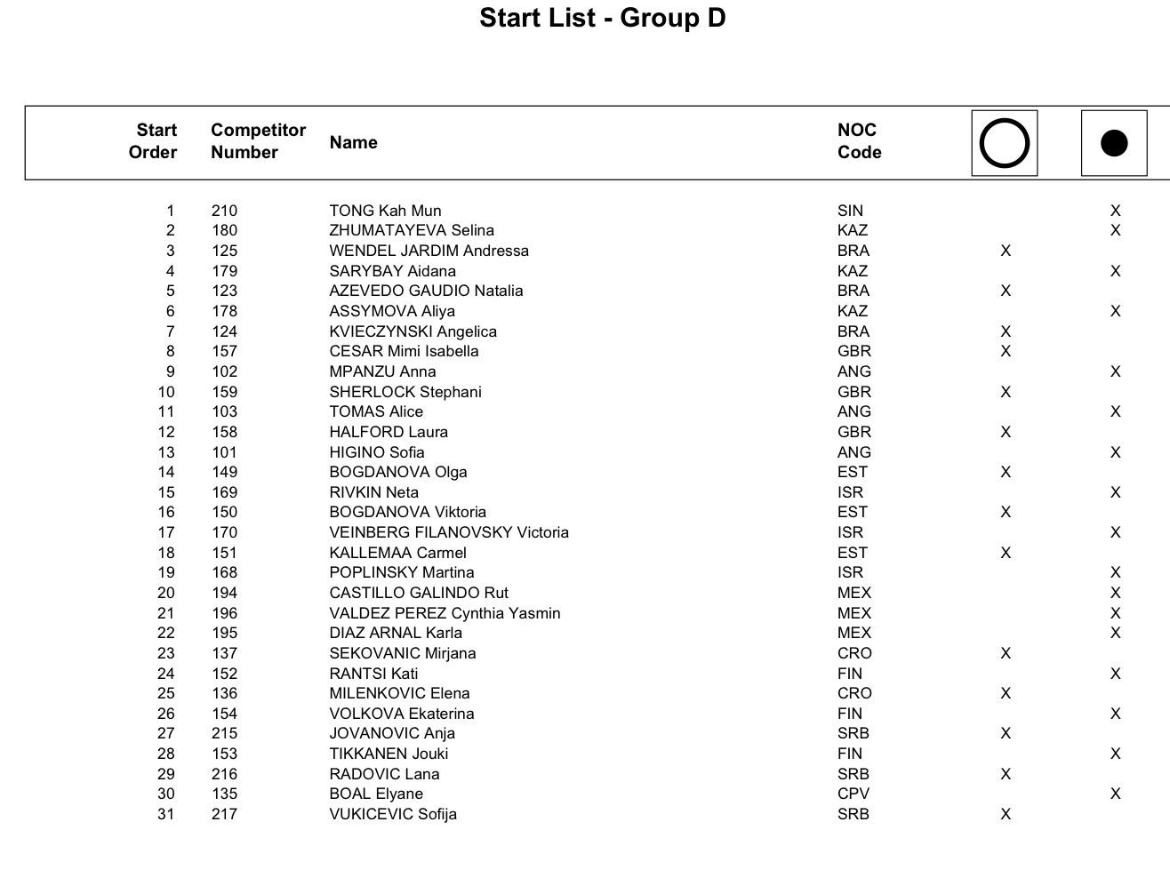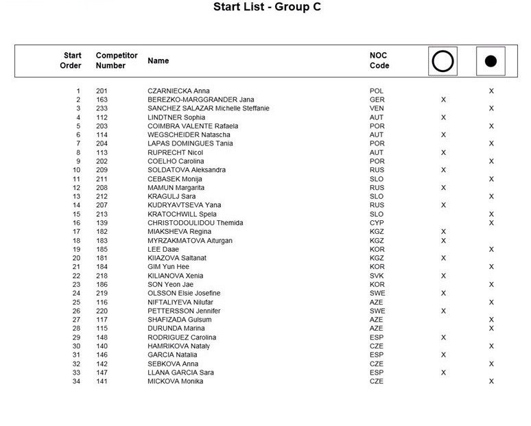 En la primera jornada clasificatoria, España demostró ser el país más fuerte en la primera rotación. Rusia, Las grandes favoritas, cometieron un error que las alejaría del podio en la clasificación general y les denegaría el acceso a las finales por aparatos en mazas. En una segunda rotación, con 3 cintas y dos pelotas, las españolas cometen diversos errores, lo que hizo que impidieran ser medalla en la clasificación general.