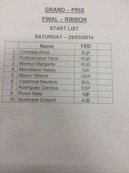 Holon Grand Prix Final Startlists