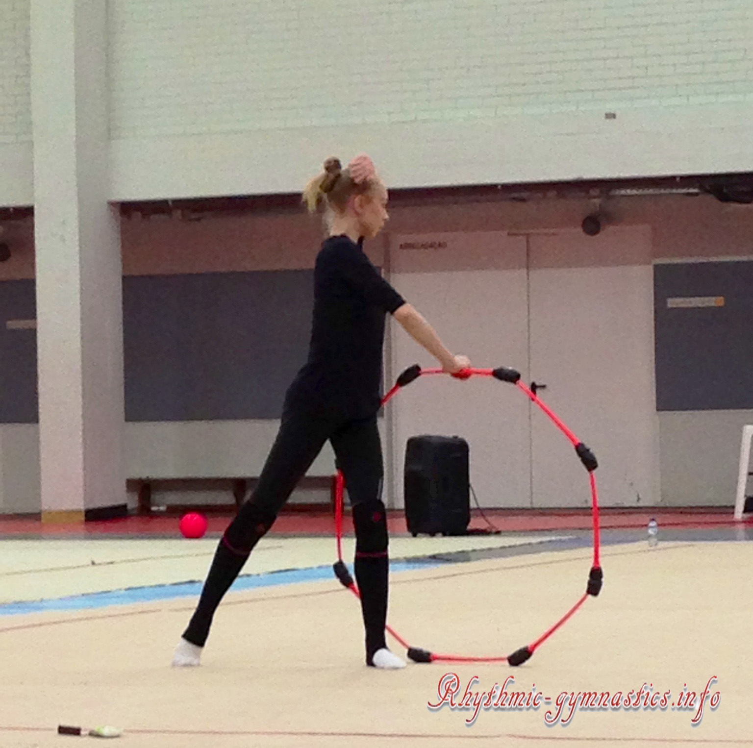Lala Yusifova made a lot of mistakes with ball routine and with hoop. This time, hoop we nt out of the carpet and hit a photographer. Photographer gave her again the hoop (-0.50).