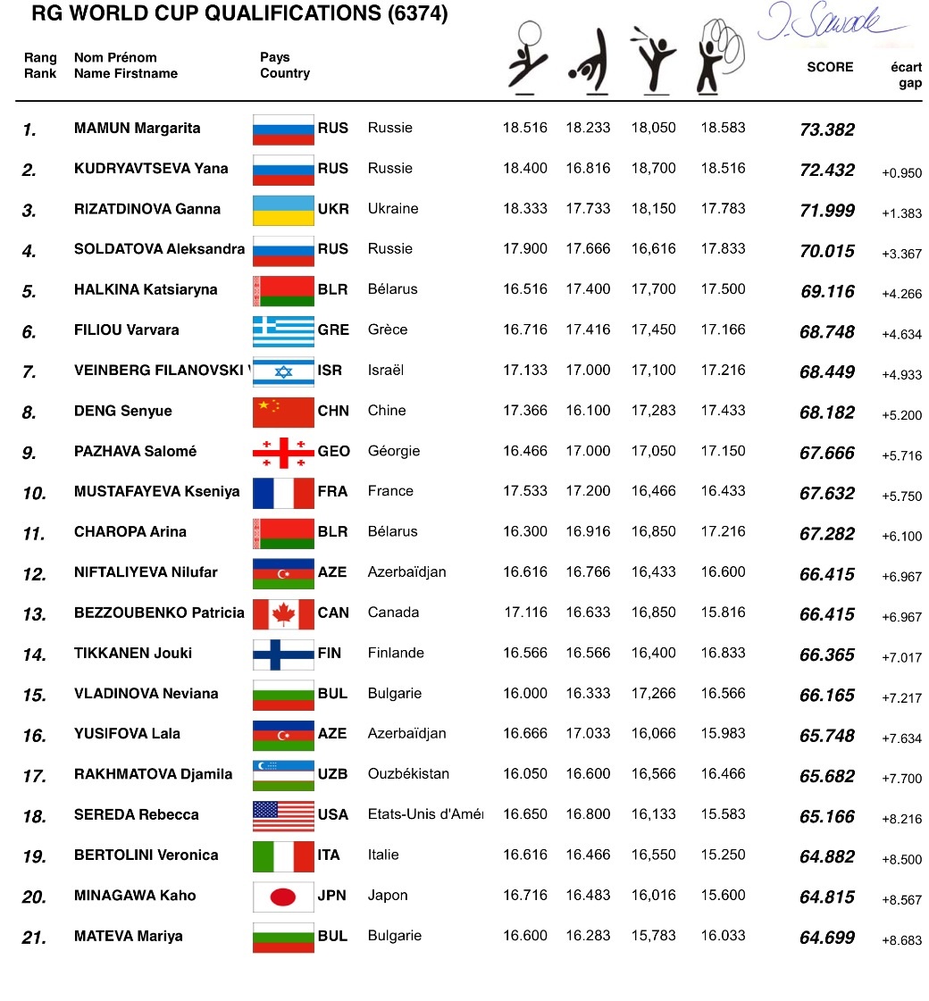 Margarita Mamun from Russia racked up 73.382 points during the All-Around final. Yana Kudryavtseva ranked second (faltered with ball) and Anna Rizatdinova from Ukraine won bronze.