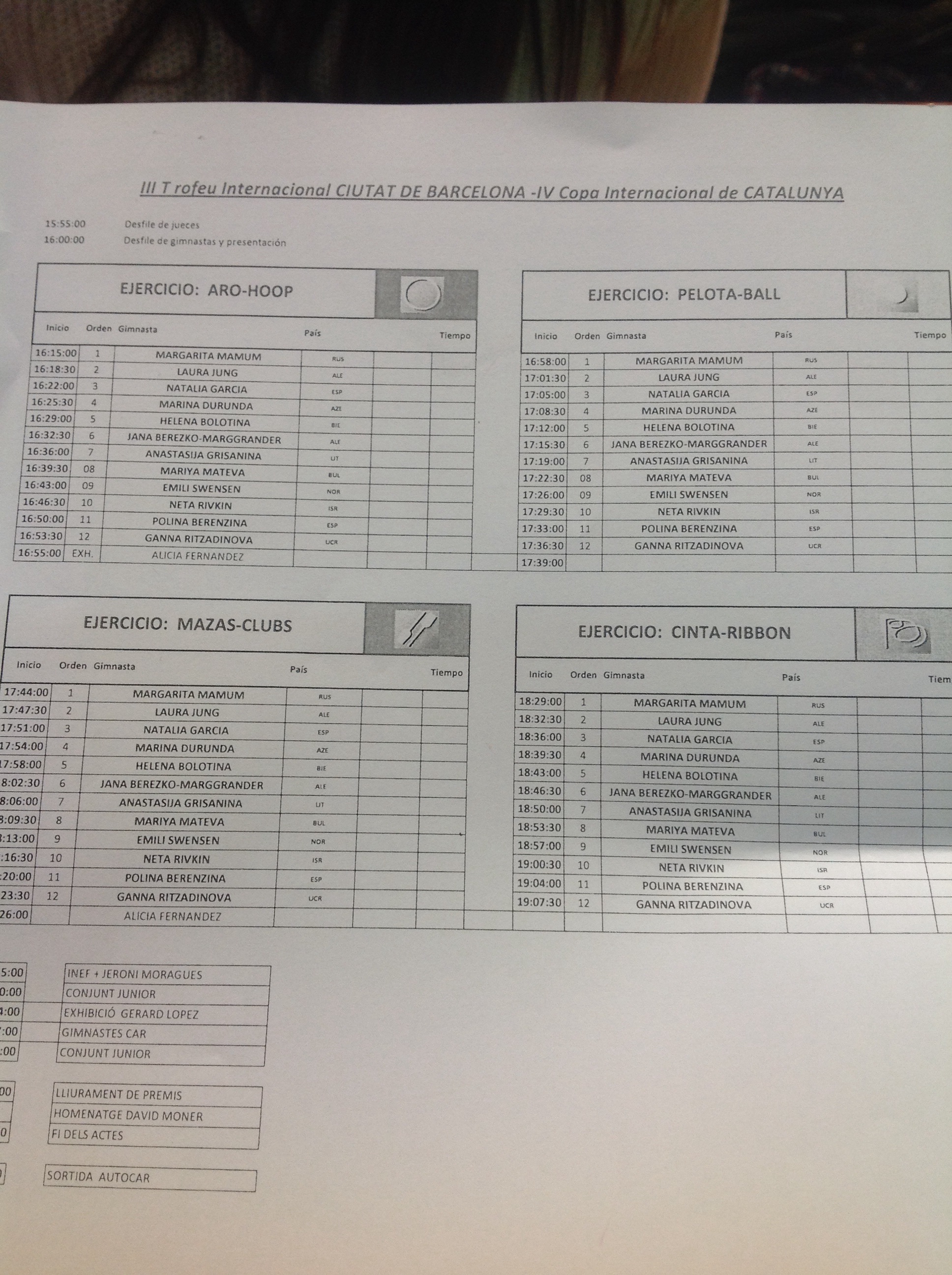 Local gymnast, Natalia García won gold medal with ribbon. Almudena Cid, 4th times Olympian gymnast, who also trained in Barcelona with Natalia years ago, was also there.