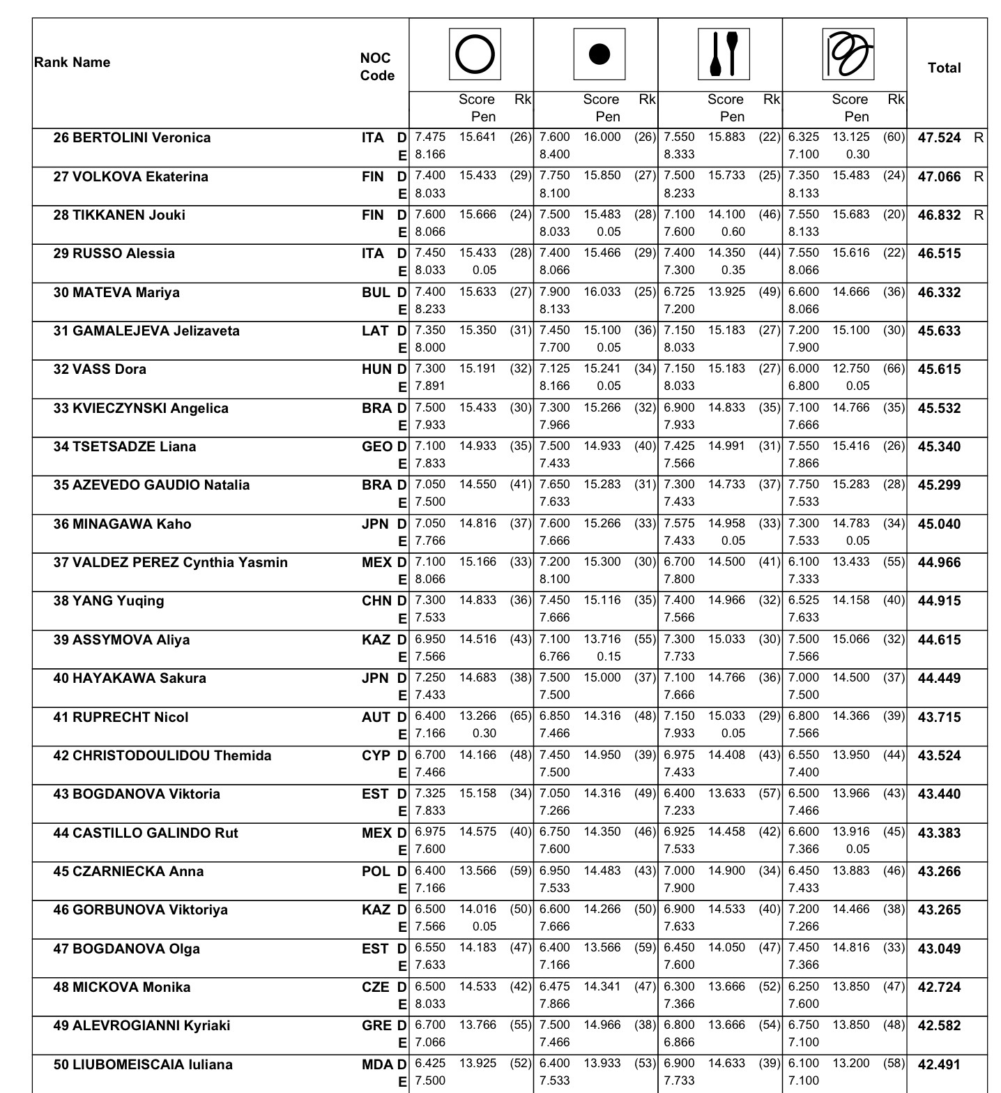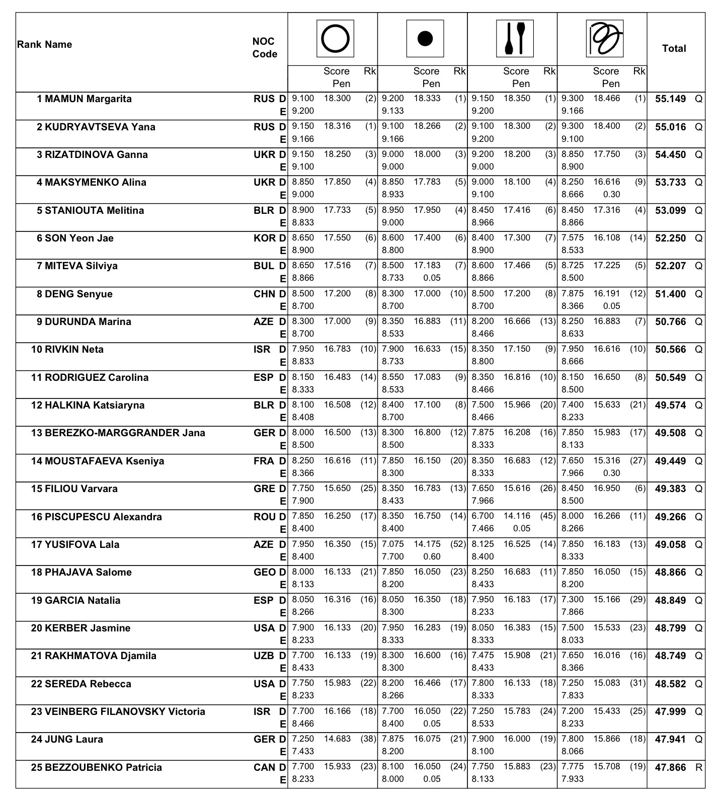 Results World Championships Kiev AA : Ball and Hoop August 28, 2013 rhythmicgymnasticsinfo Qualification Standings