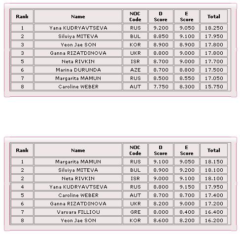 18:30 – 20:50 – Individual Seniors – two apparatus